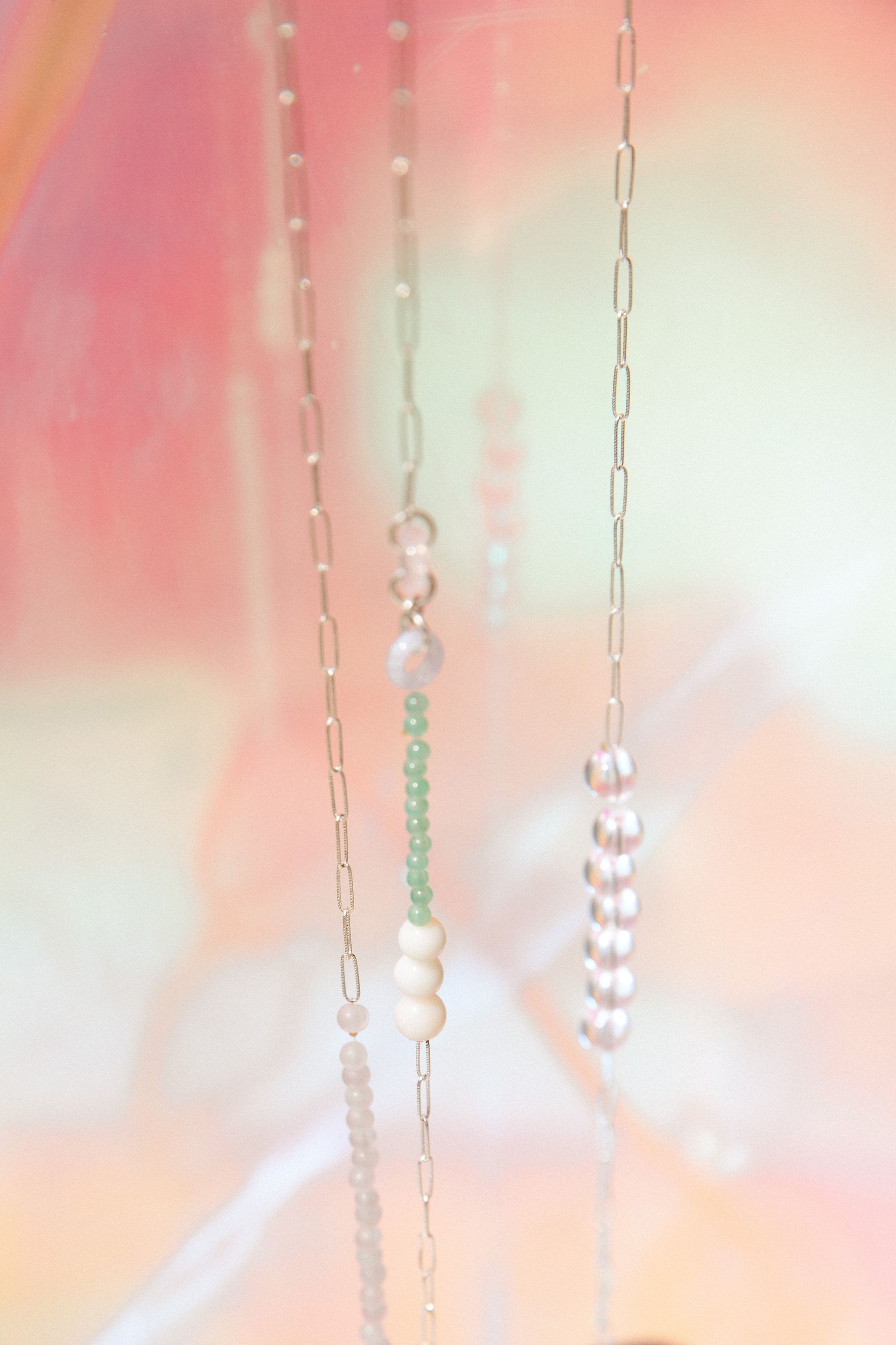 Bei unseren brandneuen JUICEY Brillenketten trifft geballte Pastellpower auf zartes Silber.